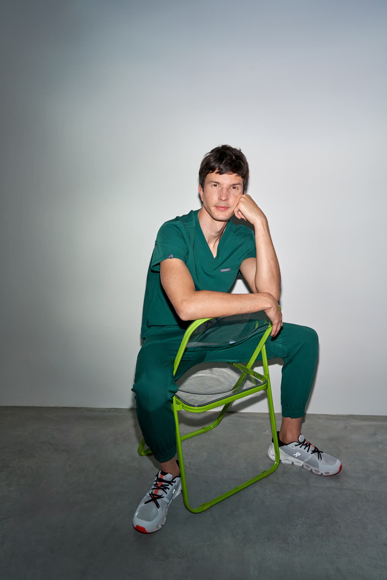Dark Green to intensywny, nasycony odcień zieleni – głęboki, spokojny i bardzo wyrazisty. Działa uspokajająco, a jednocześnie przyciąga wzrok. Sprawdza się zarówno w warunkach klinicznych, jak i szpitalnych, nadając każdej stylizacji nowoczesny, ale profesjonalny charakter. Sporty Dark Green to bluza zaprojektowana przy współpracy z lekarzami z oddziałów szpitalnych. Fason inspirowany sportową odzieżą – z elastycznym pasem i sznurkiem do regulacji – zapewnia wygodę i pełną swobodę ruchów.Model wyposażony jest w trzy kieszenie: jedną na piersi – na najpotrzebniejsze akcesoria – oraz dwie po bokach. Głębokie, ale dyskretne, nie wypychają materiału. Moodsy Air to tkanina odporna na zagniecenia, miękka w dotyku i przyjazna dla skóry. To wybór dla lekarzy, ratowników medycznych, chirurgów, diagnostów, stomatologów, fizjoterapeutów i wszystkich mężczyzn w zawodach medycznych, którzy potrzebują niezawodnego wsparcia w intensywnym środowisku. Połączona ze spodniami medycznymi tworzy komplet medyczny, która realnie wspiera Cię w pracy. Każda bluza powstaje w Polsce i przechodzi kontrolę jakości prowadzoną przez zespół moodsy z doświadczeniem, który dba o trwałość, wykończenie i pełne dopracowanie detali.