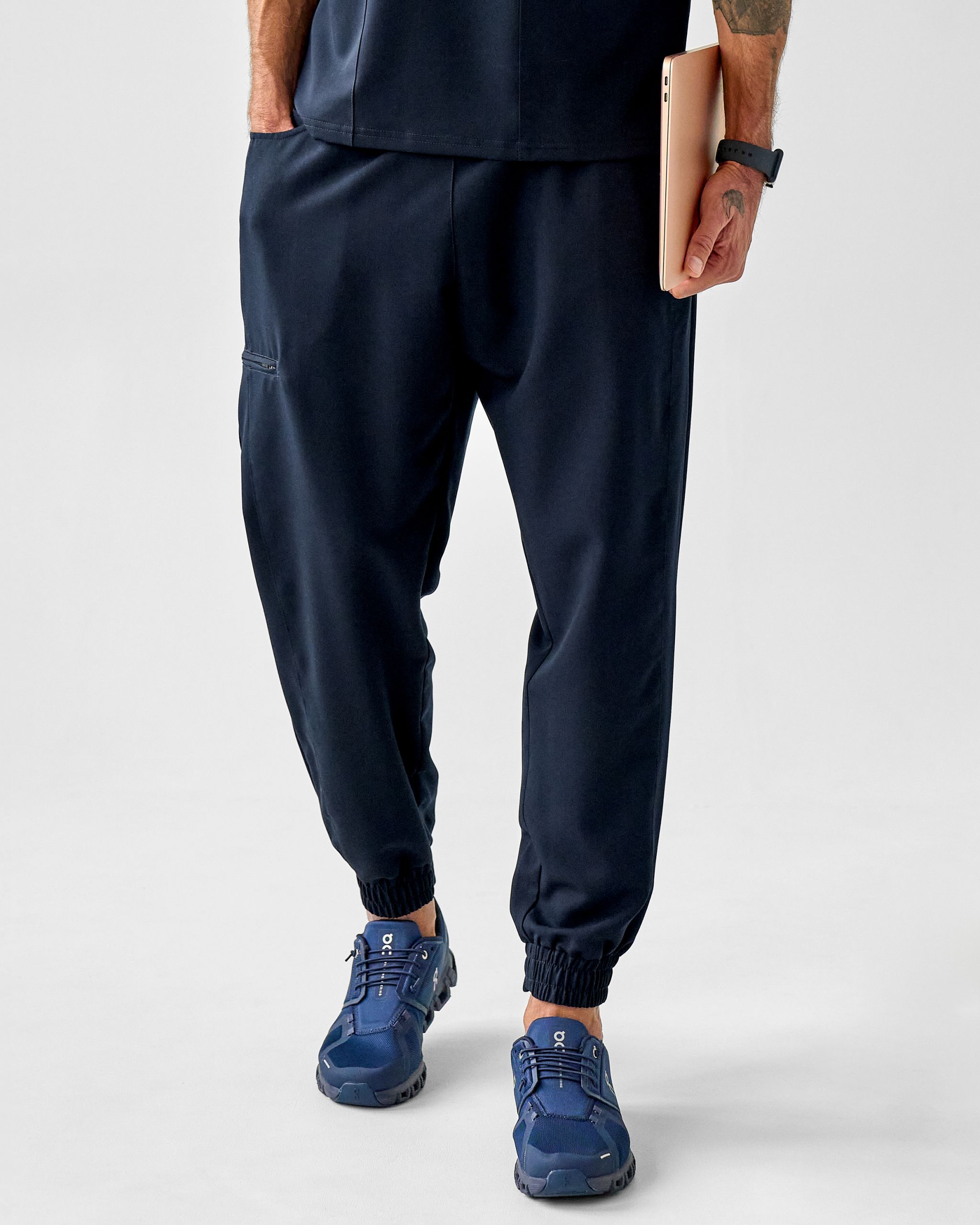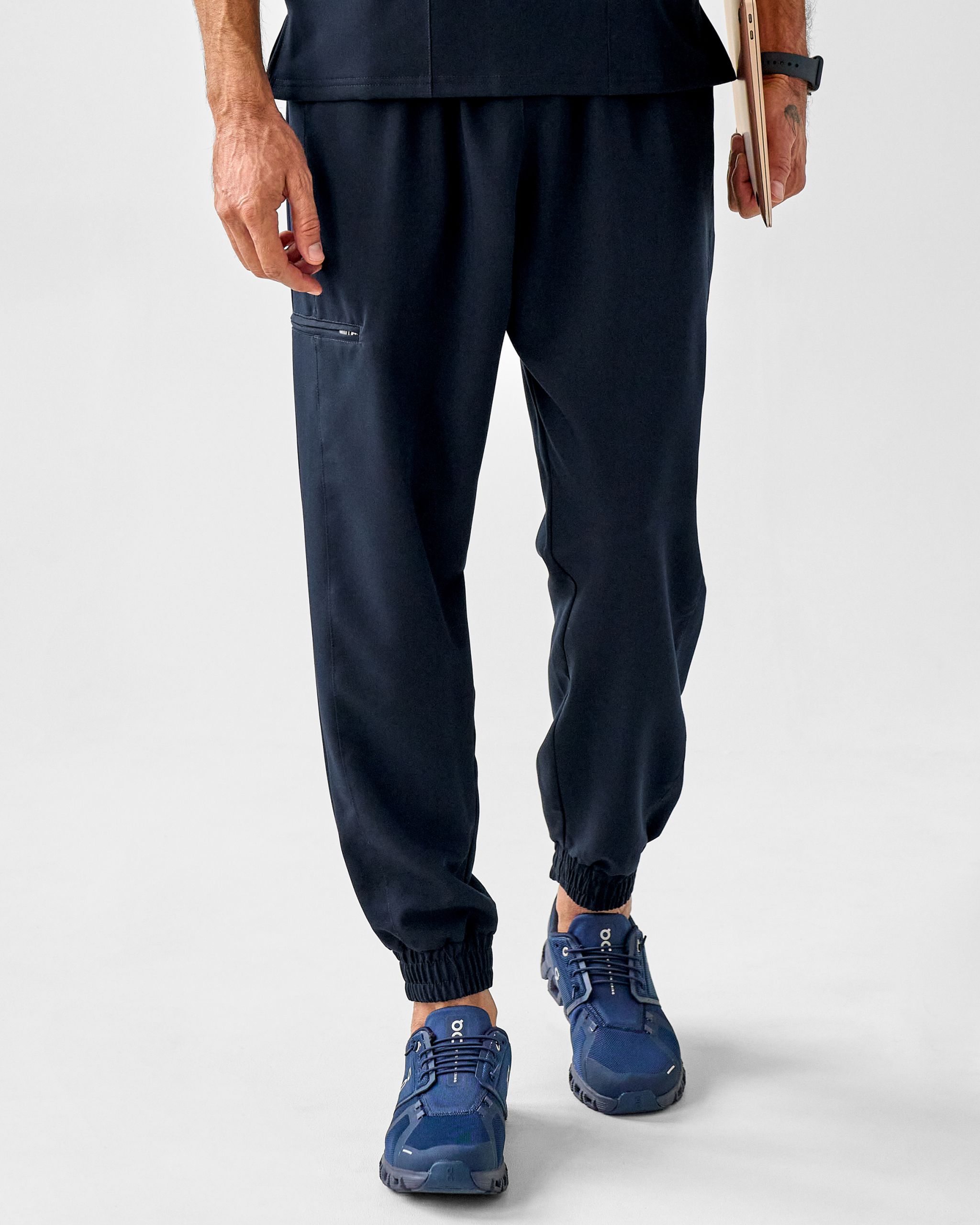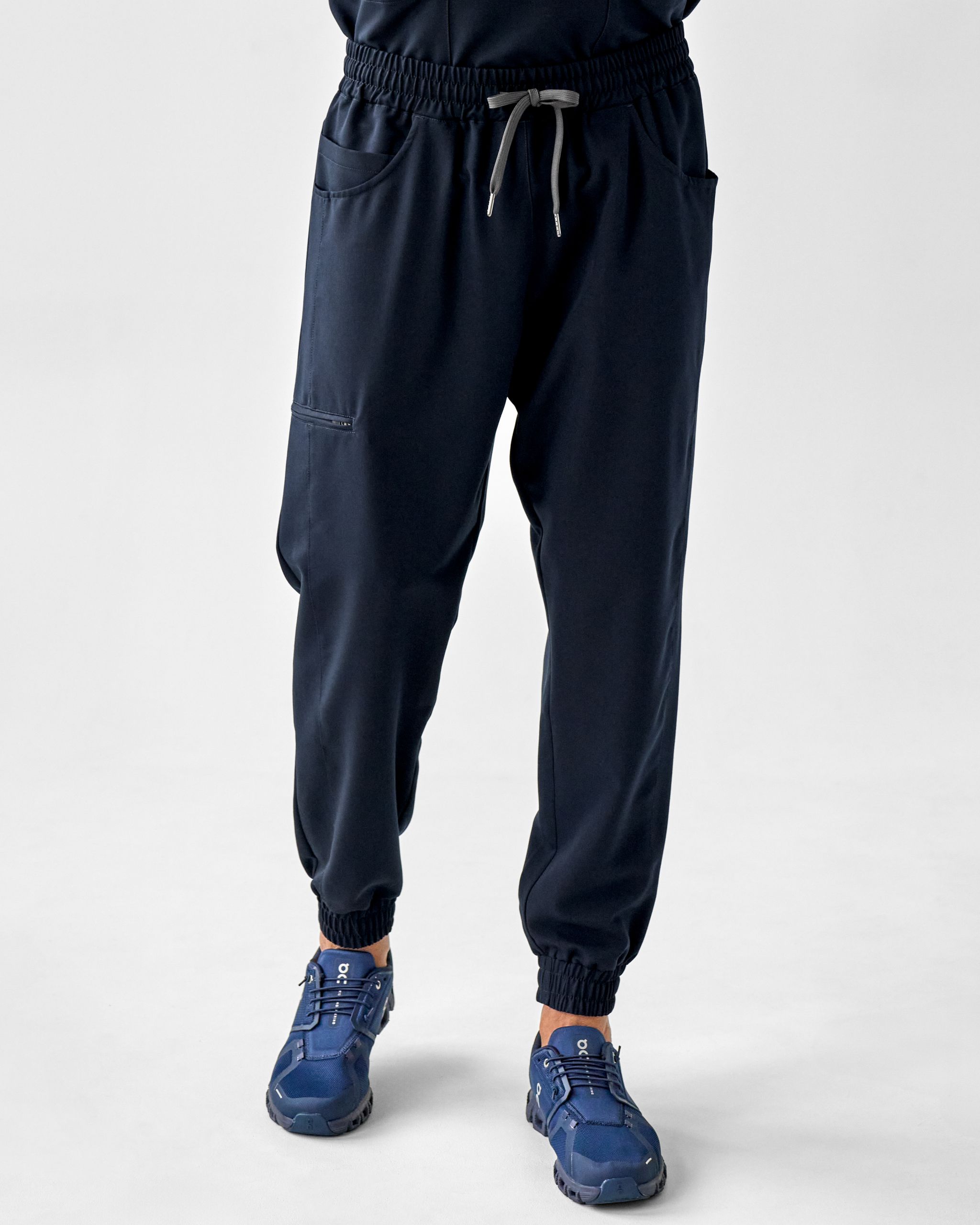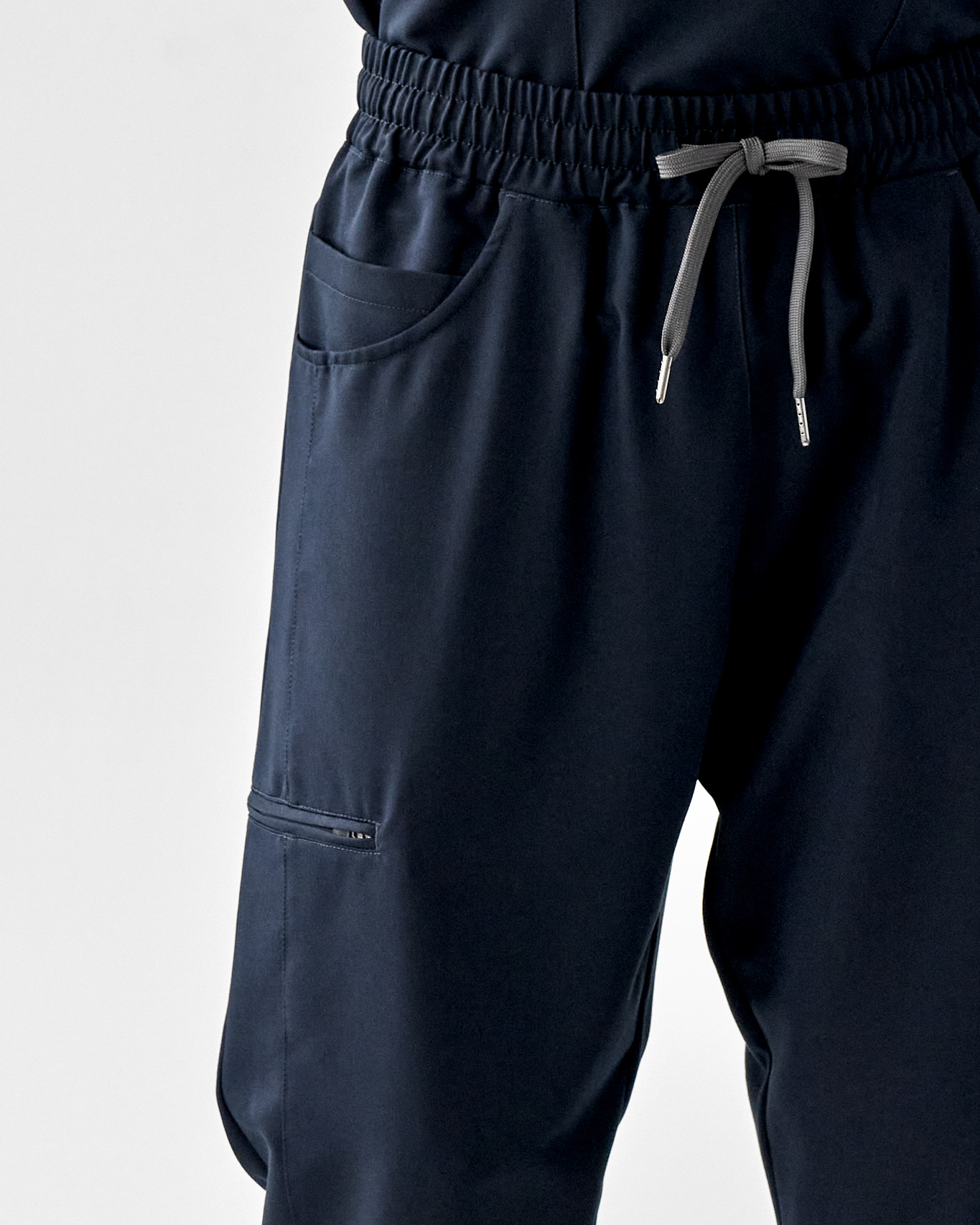 Graphite to nieoczywisty odcień – elegancka mieszanka czarnego i granatowego, która wygląda świeżo, nowocześnie i profesjonalnie. Ten model to wybór medyków, którzy chcą wyglądać profesjonalnie, a jednocześnie czuć się komfortowo przez cały dyżur. Sportowy krój jogger z elastyczną gumą i sznurkiem w pasie dopasowuje się do sylwetki i pozwala na pełną swobodę ruchu. A pięć pojemnych kieszeni – w tym zapinana na zamek na wysokości kolana, tylna i trzy boczne (jedna mniejsza w większej) – to praktyczne wsparcie na każdym etapie dnia.
